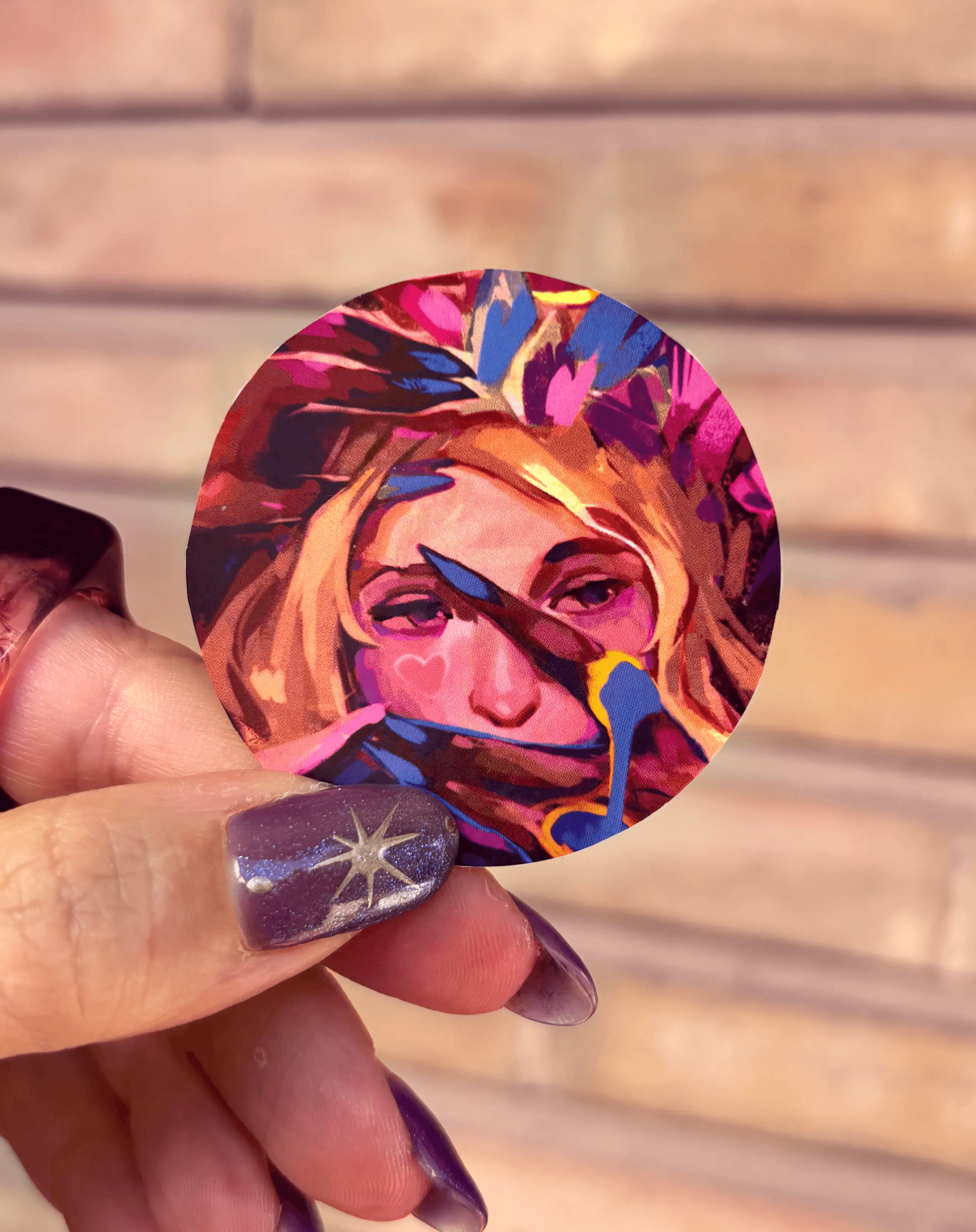 5 × 5 cm (≈ 2 × 2 in) Round sticker, compact and ideal for any surface.